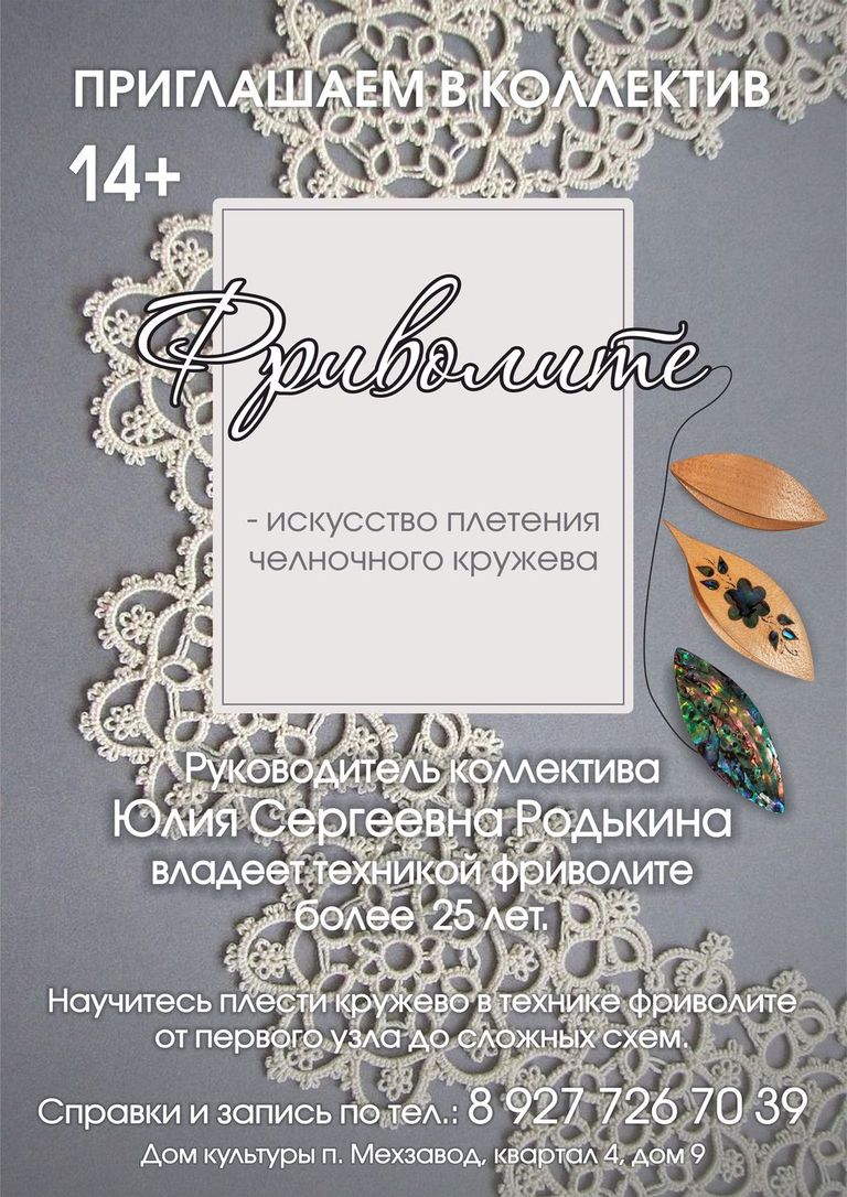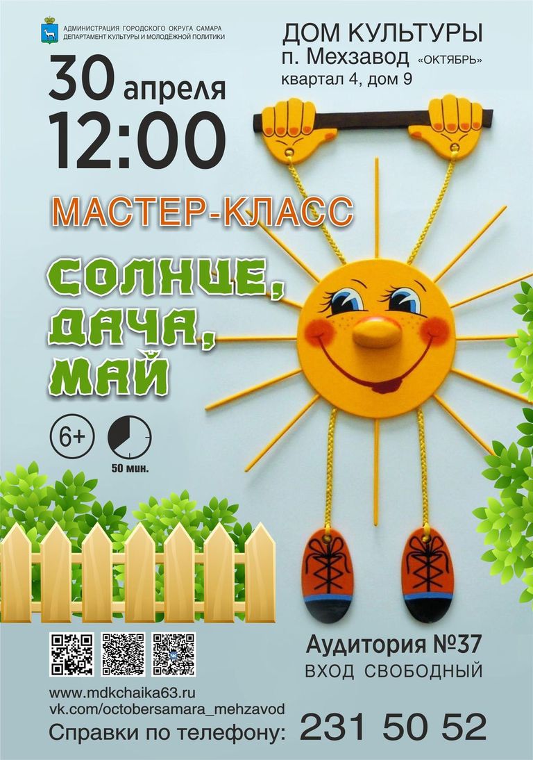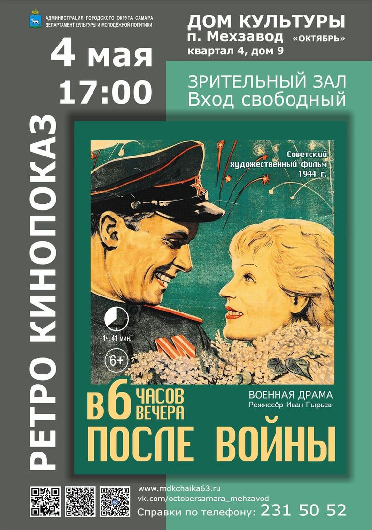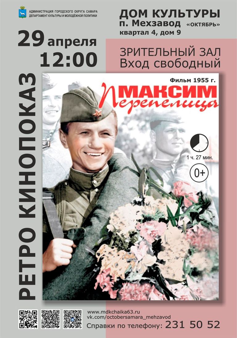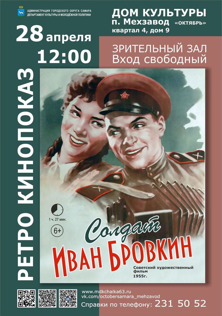 | АфишаУважаемые посетители! Обращайте внимание на место проведения мероприятия, указанное в афише!Все мероприятия 28.04.2026 • Водевиль «Уж замуж невтерпёж», в рамках театральный гостиной в ДК п. Мехзавод ![]() 28.04.2026 • РЕТРО КИНОПОКАЗ «Солдат Иван Бровкин» в ДК п. Мехзавод ![]() 29.04.2026 • Концертная программа «И в танце будет жизнь моя», посвященная Международному дню танца в ДК «Чайка» п. Управленческий ![]() 29.04.2026 • РЕТРО КИНОПОКАЗ «Максим Перепелица» в ДК п. Мехзавод ![]() 30.04.2026 • АФИША на АПРЕЛЬ в ДК «Чайка» п. Управленческий ![]() ![]() 30.04.2026 • АФИША на АПРЕЛЬ в ДК п. Мехзавод ![]() 30.04.2026 • МАСТЕР-КЛАСС «СОЛНЦЕ, ДАЧА, МАЙ» в ДК п. Мехзавод ![]() 01.05.2026 • Концертная программа «Здравствуй, май!» Вокальная группа «Мелодия души» в ДК «Чайка» п. Управленческий ![]() 02.05.2026 • МУЗЫКАЛЬНАЯ ГОСТИНАЯ Концертная программа Взрослого хора академии Наяновой «И жизнь и слезы и любовь» в ДК п. Мехзавод ![]() 04.05.2026 • Областная художественная выставка «ПОРТРЕТ» в ДК «Чайка» п. Управленческий ![]() 04.05.2026 • РЕТРО КИНОПОКАЗ фильма «В 6 часов вечера после войны» в ДК п. Мехзавод ![]() 06.05.2026 • Праздничный концерт «Звуки Победы» ДМТ «Задумка» в ДК «Чайка» п. Управленческий ![]() 14.05.2026 • Отчетный концерт «Майский вальс» Вокальный ансамбль «А.Соль» в ДК «Чайка» п. Управленческий ![]() 17.05.2026 • Персональная художественная выставка В.И. Башкирова «Художник и момент. Приглашение к диалогу» в ДК «Чайка» п. Управленческий ![]() |
